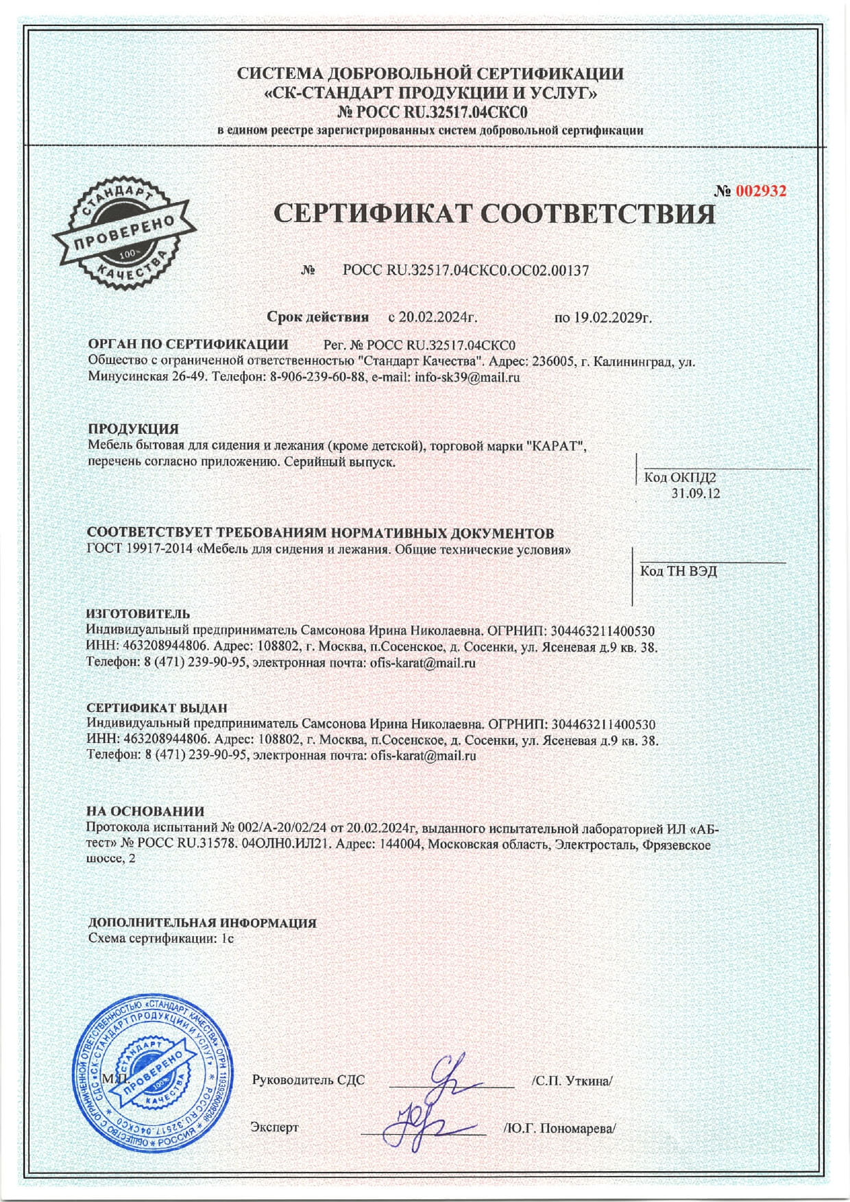 В случае приобретения уцененной мебели претензии по качеству и внешнему виду не принимаются.